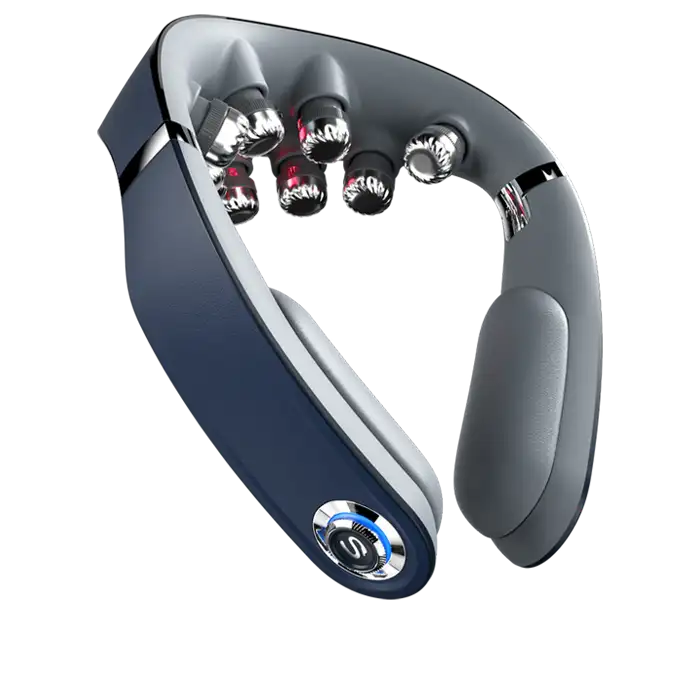Neck massager with heat utilizes 4+2″ 6D massage heads to simulate human hand massage, providing a true deep tissue massage experience